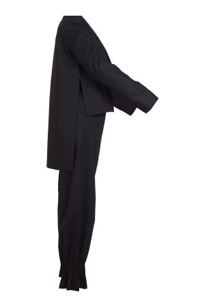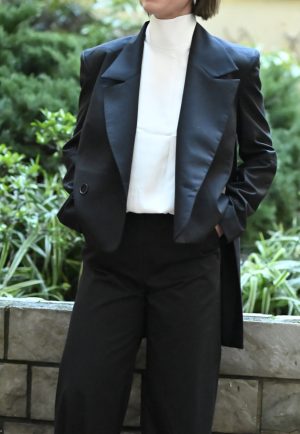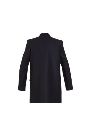 The jacket features a commanding lapel for a touch of authority and an extended back section inspired by the heritage of the traditional frack. It blends ultra-formal white-tie refinement with black-tie elegance, creating a contemporary look that stands out with depth and sophistication.